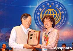 開幕式上還舉行頒獎(jiǎng)儀式,認(rèn)知科學(xué)和實(shí)驗(yàn)心理學(xué)家、中國(guó)科學(xué)院生物物理研究所陳霖教授獲二00四年香港求是基金會(huì)“杰出科學(xué)家獎(jiǎng)”,獎(jiǎng)金一百萬(wàn)元人民幣,該基金會(huì)出資人、已九十一歲高齡的香港愛(ài)國(guó)實(shí)業(yè)家查濟(jì)民親自向陳霖頒獎(jiǎng)。安徽中科大訊飛信息有限公司總裁劉慶峰等五人榮獲本年度“中國(guó)科協(xié)求是杰出青年成果轉(zhuǎn)化獎(jiǎng)”,另有十五位青年才俊獲“中國(guó)科協(xié)求是杰出青年實(shí)用工程獎(jiǎng)”。