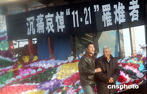 11月23日下午,11.21包頭空難遇難者家屬在飛機失事現(xiàn)場搭設的靈堂前悼念親人。中新社記者:張宇