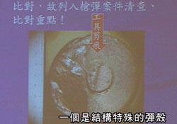 08.28 李昌鈺鑒識報告出爐,調(diào)查報告發(fā)現(xiàn)銅彈頭底部有磨痕,可能是由工廠機具所打造,鉛彈頭上則有藍、白色纖維及血跡反應(yīng),兩槍很有可能從兩把槍支分別射擊,但可能是同一支槍管鋸開,改造成兩把槍支。