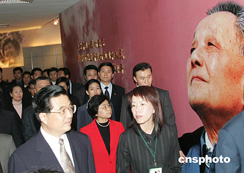 胡錦濤與她們握手、攀談。胡主席說(shuō):“看見(jiàn)你們,我很高興!崩钆空f(shuō):“我們也很高興呀!”