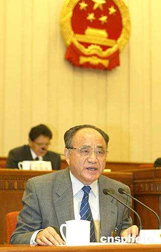 受委員長(zhǎng)會(huì)議委托,全國(guó)人大常委會(huì)法制工作委員會(huì)主任胡康生就委員長(zhǎng)會(huì)議提請(qǐng)審議的反分裂國(guó)家法草案作了說明。