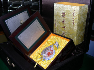 1996年6月,在錦州凌川酒廠地下偶然挖掘出清道光乙已年(1845年)穴藏貢酒四個(gè)木酒海(古代盛酒容器),藏酒四噸左右。經(jīng)專家考證,這是一批穴藏一個(gè)半世紀(jì)的貢酒實(shí)屬“世界罕見,珍奇國寶”,專家為之取名為“道光廿五”。