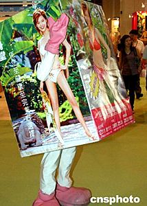 “第三十五屆夏日婚紗及結(jié)婚用品展”六月四日在香港會展中心開幕,是次展覽云集兩百多間公司、三百多個攤位。圖為商家卡通人在展會上促銷。作者:錢興強(qiáng)
