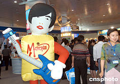 APEC在電子商務(wù)領(lǐng)域舉辦的首次重大經(jīng)貿(mào)活動(dòng)“APEC電子商務(wù)博覽會(huì)”,六月十五日至十九日在中國(guó)海濱城市煙臺(tái)舉行,以臺(tái)灣歌手周杰倫為形象的充氣人出現(xiàn)在本次商覽會(huì)主展覽上。中新社記者:張宇
