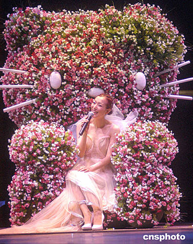 鄭秀文演唱期間,獲熱情歌迷送上可愛的大型毛公仔。