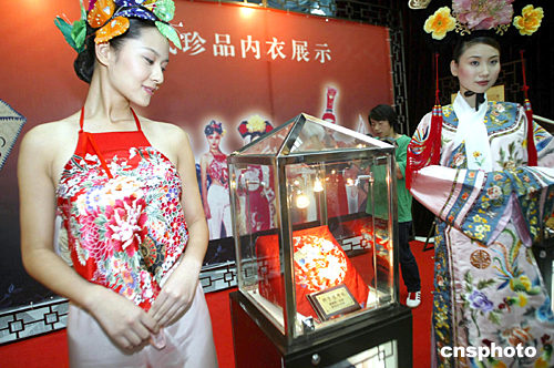 7月27日,大型后現(xiàn)代多媒體舞臺(tái)劇《尋衣記——云縷心衣歐迪芬》在北京舉行新聞發(fā)布會(huì),主創(chuàng)人員及部分演員與媒體見面,更有清代珍品內(nèi)衣展以及身著古裝的模特為新聞發(fā)布會(huì)助興!秾ひ掠洝穼⒂7月30日、31日在北京保利劇院上演。中新社記者:盛佳鵬