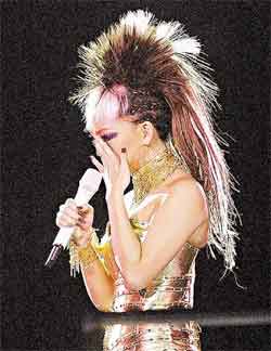 張惠妹昨天唱到第二首歌《站在高崗上》,原本是一首開心的歌曲,她唱著唱著眼淚卻不自覺(jué)地掉下來(lái)。由于這陣子實(shí)在有太多的感受,才到第四首歌《聽!罚⒚眉(dòng)大哭,泣不成聲,臺(tái)下歌迷大聲為她加油,叫她不要哭!