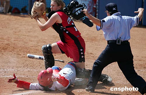 當地時間八月十六日,在雅典奧運女子壘球比賽中,中國隊四比二戰(zhàn)勝加拿大隊。中新社記者:毛建軍