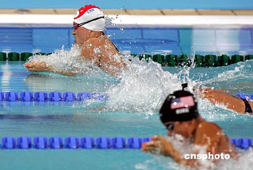 當(dāng)?shù)貢r(shí)間8月16日,中國(guó)選手羅雪娟以1分06秒64的成績(jī)戰(zhàn)勝了澳大利亞選手瓊斯,打破奧運(yùn)會(huì)紀(jì)錄,奪得雅典奧運(yùn)會(huì)女子100米蛙泳金牌,再次衛(wèi)冕了世界女蛙王的頭銜。這是中國(guó)代表團(tuán)在本屆奧運(yùn)會(huì)上獲得的第八塊金牌。 中新社記者:任晨鳴