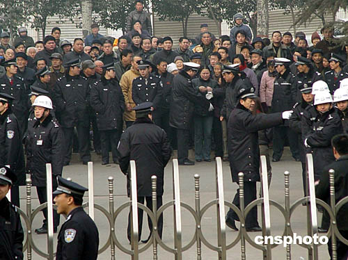 一月二十一日上午九時,河南許昌市中級人民法院對“中原涉黑第一案”——宋留根、馬獻(xiàn)洲、郝洪山特大涉黑團(tuán)伙案,進(jìn)行一審宣判。當(dāng)?shù)孛癖娋奂诜ㄍネ獾却袥Q。以宋留根為首的涉黑犯罪團(tuán)伙是五十年來河南最大的犯罪集團(tuán)。作者:胡珂