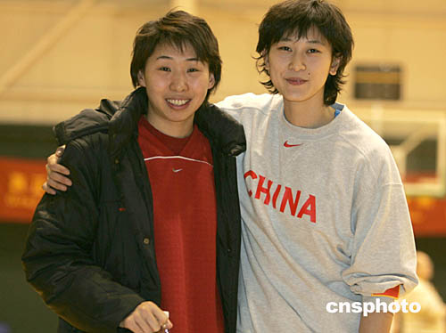 中國(guó)女籃主力前鋒隋菲菲(右)、得分后衛(wèi)苗立杰,1月22日在北京國(guó)家籃球訓(xùn)練基地隨隊(duì)訓(xùn)練。