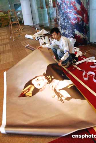 “法國(guó)印象派繪畫珍品展”將在2月5日在香港藝術(shù)館揭幕,即將亮相的47幅法國(guó)印象派名作已運(yùn)抵香港藝術(shù)館布展,1月27日,工作人員張貼名畫海報(bào)《吹笛子的男孩》。作者:洪少葵