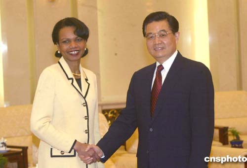 圖:胡錦濤會(huì)見(jiàn)美國(guó)國(guó)務(wù)卿賴斯