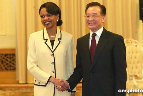 快訊:中國國務(wù)院總理溫家寶會見美國國務(wù)卿賴斯