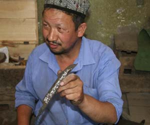 英吉沙小刀久負(fù)盛名,小刀廠的工匠會在制作的小刀上刻上自己的名字。