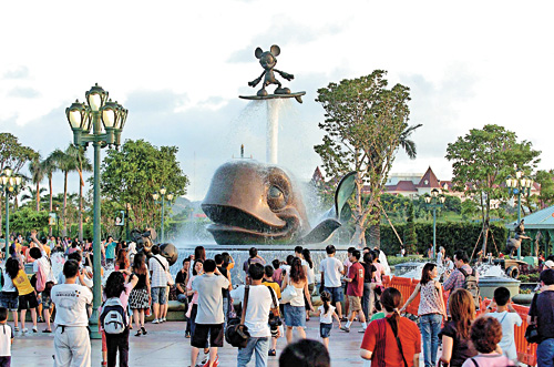 迪士尼站昨日全天均擠滿人群,猶如繁忙時(shí)間的地鐵車站一般,但秩序良好。香港地鐵公司表示,將來(lái)香港迪士尼樂園開幕后,若出現(xiàn)人潮,會(huì)加密班次疏導(dǎo),必要時(shí)會(huì)關(guān)閉部分入閘機(jī)。