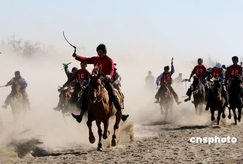 |   9月28日,來自各鄉(xiāng)鎮(zhèn)的200多名牧民在新疆哈巴河縣首屆金秋樺林藝術(shù)節(jié)上舉行賽馬比賽。在新疆維吾爾自治區(qū)成立50周年之際,哈巴河廣邀在該縣投資的企業(yè)界等相關(guān)人士參加阿肯彈唱、姑娘追等富有民族特色表演的藝術(shù)節(jié),以此拉動當(dāng)?shù)亟?jīng)濟,凝聚人心,打造哈巴河工業(yè)興縣新形象。作者:金煒   |  |  |