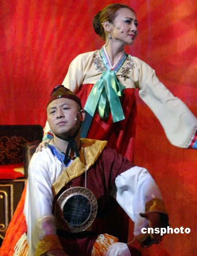 | 二月二十三日晚,正在北京上演的首部古裝武俠喜劇《麻花III人在江湖漂》吸引眾多觀眾欣賞,劇中男主角由中國(guó)著名的零點(diǎn)樂(lè)隊(duì)主唱周曉鷗出演,傳奇虛構(gòu)的劇情、幽默爆笑的演技令在場(chǎng)的觀眾開(kāi)懷大笑。圖為劇中周曉鷗扮演的小魚(yú)兒與李波兒扮演的COCO跳起“長(zhǎng)今舞”。作者:錢(qián)興強(qiáng)