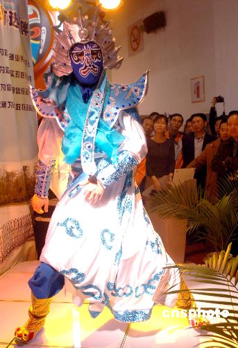 圖:川劇變臉在京為成都電視網(wǎng)絡商服務做宣傳