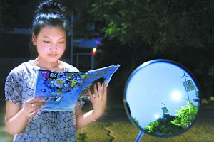 7月25日晚,一名居民在呼和浩特市學(xué)府花園社區(qū)的“風(fēng)光互補(bǔ)”路燈下閱讀。7月24日,呼和浩特市學(xué)府花園社區(qū)投資13萬(wàn)元,在廣場(chǎng)安裝了4套“風(fēng)光互補(bǔ)”路燈,利用風(fēng)能和太陽(yáng)能為小區(qū)照明,此舉每年可節(jié)約用電14000多度。新華社發(fā)