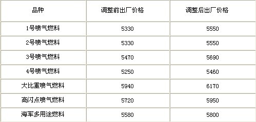 通知稱(chēng),根據(jù)近期國(guó)際市場(chǎng)油價(jià)變化情況,決定適當(dāng)提高航空煤油出廠價(jià)格(提高后的價(jià)格水平見(jiàn)表),自2010年10月26日零時(shí)起執(zhí)行。