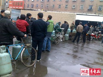 昨日,石市多個液化氣供氣站前都排起長隊,拉來一車氣,很快便被搶購光。