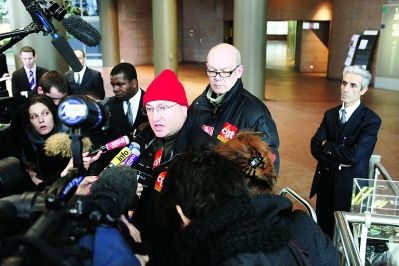 2010年2月21日,法國巴黎,法國工人總工會代表查爾斯·富拉爾在與道達(dá)爾管理層就結(jié)束為期6天的罷工談判后呼吁所有法國煉油廠罷工,并警告燃料短缺可能迫在眉睫。