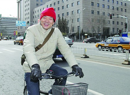 看記者正在拍照,讓他配合一下,他咧嘴笑了,然后騎上車離開(kāi)了。離開(kāi)前,記者說(shuō),您出行很環(huán)保。∷_(kāi)玩笑說(shuō),就算低碳一次吧。(記者 郭靜)