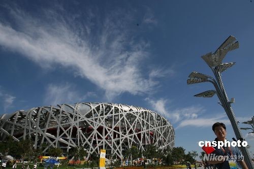 8月15日,北京一掃連日陰霾,展現(xiàn)藍(lán)天白云天氣。當(dāng)日,北京奧運(yùn)會田徑比賽拉開帷幕。中新社發(fā) 武仲林 攝
