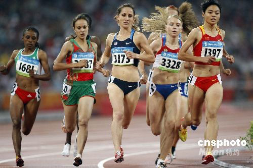 8月21日,北京奧運會田徑比賽女子1500米預(yù)賽在國家體育場進行,中國選手劉青(右一)位列小組第9名,無緣決賽。中新社發(fā) 盛佳鵬 攝