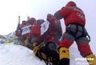 北京奧運圣火成功今天上午9時許登上珠峰,登山隊員們在峰頂進行了火炬接力,接力活動結束后,隊員們在世界之巔展示熊熊燃燒的祥云火炬以及中國國旗、奧運五環(huán)旗和北京奧運會會徽旗。