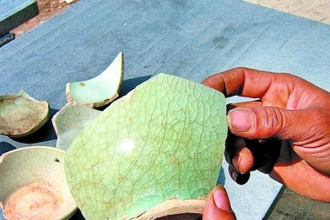 昨日(3日)上午,普查小組來到水庫,只見這里依山傍水,盛產(chǎn)高嶺土和釉水等礦產(chǎn)資源,具備燒制青瓷的條件。在水庫原儲水處發(fā)現(xiàn)了大量陶瓷片,堆積層厚達1至5米。普查組專家隨手拿起一件碎瓷,碗底有一個明顯的乳心。專家稱,這是明顯的元代青瓷特色。