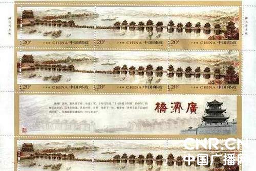 《廣濟橋》特種郵票11月16日正式發(fā)行!稄V濟橋》特種郵票是有史以來中國郵政首次專門為粵東地區(qū)發(fā)行的地方題材特種郵票;也是新世紀以來,繼《深圳經(jīng)濟特區(qū)建設》、《丹霞山》、《石灣陶瓷》之后,中國郵政專門為廣東省發(fā)行的第四套地方題材特種郵票。這套郵票的成功發(fā)行,是潮州市委、市政府貫徹、落實汪洋書記在粵東地區(qū)現(xiàn)場會上要求潮州大力推進經(jīng)濟與文化融合,實現(xiàn)跨越式發(fā)展的會議精神的有力舉措。
