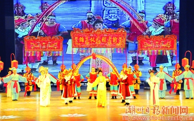 晚會(huì)的節(jié)目豐富多彩,緊隨潮州大鑼鼓之后的舞蹈《閨繡》,深刻而生動(dòng)地演繹了潮州繡女的心靈手巧和婀娜多姿。潮州弦詩樂《浪淘沙》,讓觀眾領(lǐng)略到潮州音樂的細(xì)膩和悠婉;潮州細(xì)樂《湘橋夜話》,把工夫茶茶藝表演恰到好處地融入其中,讓悠揚(yáng)潮樂中飄蕩著裊裊茶香;男女聲對唱《鳳凰山茶歌》,把畬族青年男女的熱情奔放的性情淋漓盡致地表達(dá)出來;潮州歌冊《潮州八景新唱》,則讓“老八景”唱出“新味道”。而潮曲表演《陳三五娘回潮州》,巧妙地讓陳三五娘這對古代眷侶回到“娘家”,一路行來處處感受著今日潮州城市面貌的深刻變化。在剛剛啟用的市文化藝術(shù)中心大劇院這個(gè)舞臺(tái)上,在五光十色的霓虹燈下,鄭舜英、唐龍通、許佳娜等潮劇名角和潮州市各演藝團(tuán)體用精心排練的節(jié)目,把晚會(huì)的氣氛一次次推向高潮,也贏得了現(xiàn)場觀眾一陣陣熱烈的掌聲。(吳杰文)