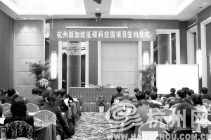 11月24日,杭州錢江經(jīng)濟(jì)開發(fā)區(qū)與新加坡凈化科技企業(yè)集團(tuán)就杭州—新加坡低碳科技園項(xiàng)目正式簽署合作協(xié)議,新加坡工商聯(lián)合總會(huì)有關(guān)負(fù)責(zé)人及數(shù)十家新加坡企業(yè)代表出席簽約儀式。