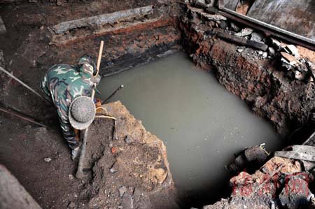 昨天(28日)上午,記者來到血池殿,已有十多位附近居民圍著重見天日的“血池”參觀。60歲的林長欽依伯告訴我們,當(dāng)時(shí)工人剛剛挖開地面,看到水面,以為只是地下水道,并沒有在意,等到整個(gè)池塘挖出時(shí),大伙兒才覺得可能有點(diǎn)兒名堂。