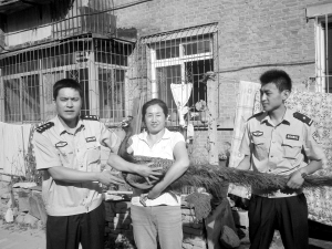 民警將孔雀和自稱主人的姜大爺一起帶到了派出所,在派出所里姜大爺講出了孔雀丟失的經(jīng)過。