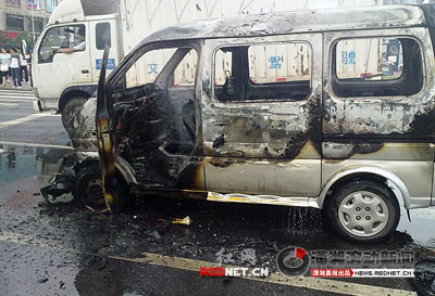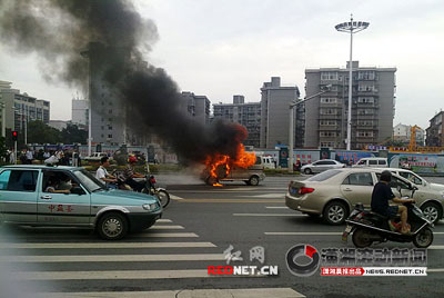 目擊者介紹,小車起明火后,頓時(shí)濃煙彌漫,一度影響交通。交警立即在現(xiàn)場(chǎng)指揮疏導(dǎo),等待消防前來滅火。10分鐘后,火被熄滅,但是貨車也燒得“不成模樣”。
