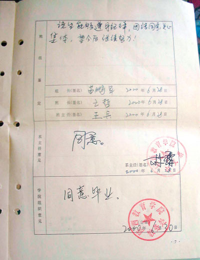 學(xué)籍登記表上寫(xiě)著“同意畢業(yè)”