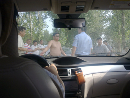 面對(duì)民警,在摩托車(chē)被推開(kāi)后,不明身份人員仍不愿放行,“金鏈子”裸著上身更是蹲在車(chē)前不肯起來(lái),稱(chēng)“除非賠我們莊稼錢(qián)”……經(jīng)民警多次勸說(shuō),記者終于在當(dāng)日下午4時(shí)許安全抵達(dá)了狼城崗鎮(zhèn)政府。