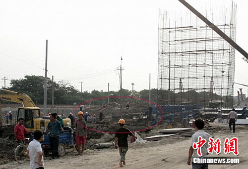 在施工現(xiàn)場,記者看到,有一座鋼筋籠佇立在工地上,目測大概有10米左右高,“倒塌的那座‘鋼筋籠’比這座還要高半米左右,當(dāng)時有7-8個人正在上面扎鋼筋。”工地上的工人告訴記者,不知道為什么,鋼筋籠就倒塌了。但也有工友表示,因?yàn)殇摻罨\的鋼筋質(zhì)量不合格,工人們當(dāng)時正在拆除。
