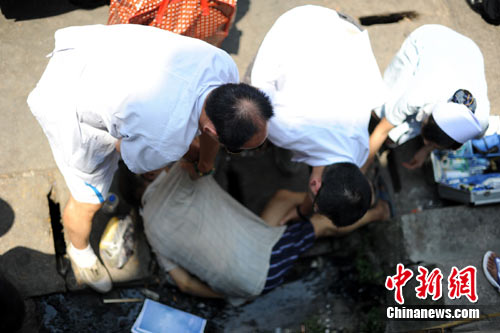 中新網(wǎng)重慶7月30日電(連肖 劉函冉)30日下午14時(shí)許,記者路過(guò)重慶陳家坪汽車(chē)站時(shí)看到,一六旬老人倒在車(chē)站出站口外的排水溝里!120”急救人員稱,該老人極有可能是因下空調(diào)車(chē)后,無(wú)法適應(yīng)室外40多度的高溫,突發(fā)心腦血管疾病猝死。