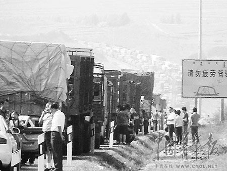 9月1日18時(shí)許,中國青年報(bào)記者搭車從集寧出發(fā),沿110國道由西向東(即往北京方向——記者注)行駛。當(dāng)駛過白海子收費(fèi)站(位于察哈爾境內(nèi)——記者注)約3公里時(shí),記者遠(yuǎn)遠(yuǎn)地看到前方的大貨車陸續(xù)停了下來,這條“車龍”見尾難見首。