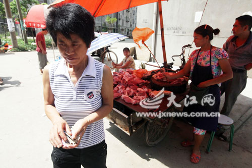 “我當時被嚇壞了,不過他后來說不會傷害我,我才松了口氣!北粧冻值膵D女是小區(qū)居民,叫李菊香。因剛添了孫子,李菊香昨日早早起床買菜,準備招待親戚。李菊香剛到豬肉攤旁買肉,胡某突然從身后將她扣住,用刀架在她的脖子上。李菊香嚇壞了,問胡某什么事。胡某說,他被人騙來搞傳銷,處境很危險。他挾持她,只是希望引來民警,幫他逃離傳銷。李菊香覺得他不像說謊,放松了一些,周圍居民果然有人報了警。