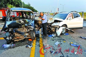 另一輛白色越野車?yán)镉幸荒幸慌,二人被撞暈在車?nèi)。交警很快趕到現(xiàn)場,試圖營救被困女司機(jī),無奈車輛變形厲害,只能向消防部門求助。越野車內(nèi)的一男一女被拉出。