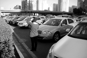 昨日17時(shí)30分許,交警在多次提醒無效的情況下,開始張貼罰單,占道近4個(gè)多小時(shí)的車輛陸續(xù)離開。
