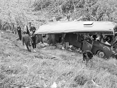 傷勢較輕的乘客楊先生回憶說,早上9點(diǎn)多,該中巴車滿載乘客從海石灣出發(fā),大約十多分鐘后,車行駛到旋子村段。這時,前面突然來了一輛車,在會車過程中,中巴車司機(jī)朝右打了方向盤。由于下雨路滑,客車竟沖過護(hù)欄沿斜坡向玉米地沖了下去,車上乘客嚇得大叫,后來他就什么也不知道了。當(dāng)他反應(yīng)過來時,只見車頂不見了,車身倒在玉米地內(nèi),現(xiàn)場亂作一團(tuán)。有的乘客從車窗里爬了出來,傷勢較輕的乘客還主動營救重傷員,大家用手機(jī)撥打120和110求援。