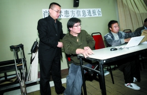 昨日上午9時30分,記者到達(dá)北人澤洋大廈時,正好遇見前來參加信息通報(bào)會的患者代表。其中一名戴著眼鏡的青年男子坐在輪椅上,在病友的幫助下艱難地上臺階。另一名拄著雙拐的矮個男子緩慢地向前挪動,每人手上都拿著一份當(dāng)天的北京晨報(bào)。10月10日,方舟子和方玄昌被襲案閃電開庭并宣判后,昨日本報(bào)以《肖傳國被判拘役5個半月》為題進(jìn)行了報(bào)道。