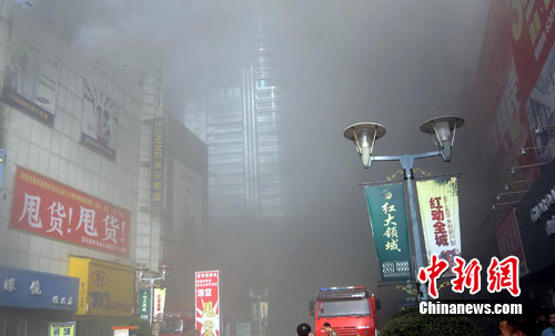 記者第一時間趕到現(xiàn)場,繁華的商業(yè)街已是濃煙滾滾,難以視物,消防部門已在火災(zāi)現(xiàn)場進(jìn)行撲救 。據(jù)逃生出來的商廈業(yè)戶稱,商場內(nèi)煙很大。另據(jù)了解,商場內(nèi)有多人被困。記者在現(xiàn)場看到,大廈附近的一些商鋪也被大火波及。