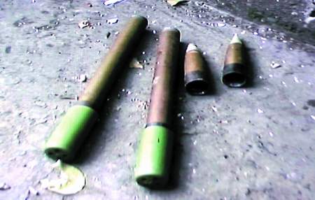 正在這時,劇組那名工作人員發(fā)現(xiàn)了異樣。在一個堆著啤酒瓶、廢紙的地方,有4根鐵的條狀物很是怪異:長的2根有1尺多長,一頭是綠色的,一頭是棕色的;另外2根很短,是圓錐體,尖上是白色的,身體是棕色的,尾部又是黑色的!鞍⊙剑@里有火箭彈!”這員工一聲喊,把周圍的人嚇了一大跳。